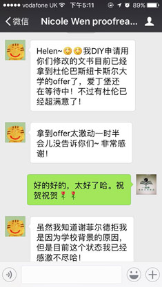 经丹尼尔修改申请文书的学生的反馈: